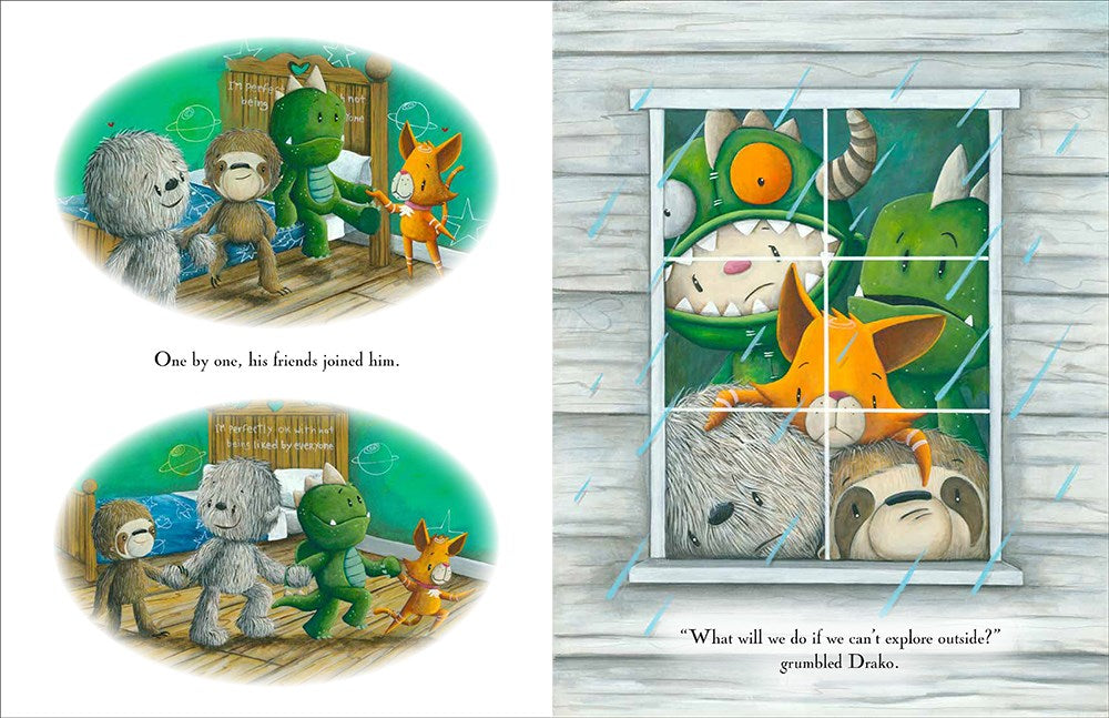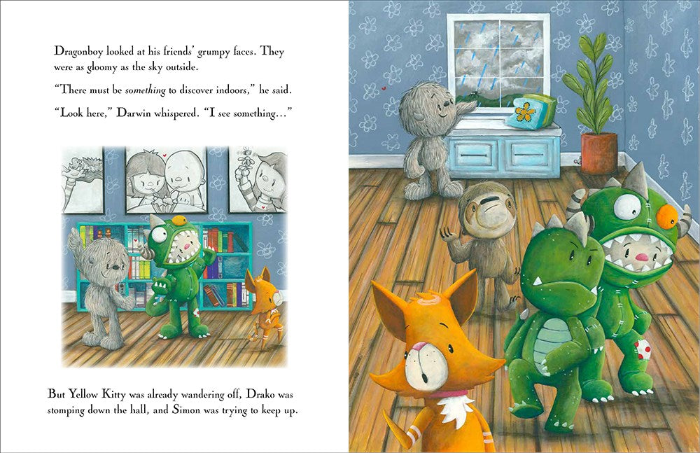 Dragonboy and his stuffed-animal friends are stuck at home, feeling as gloomy as the weather. If only they could go outside and discover something. Inside everything is the same as always. Or is it….