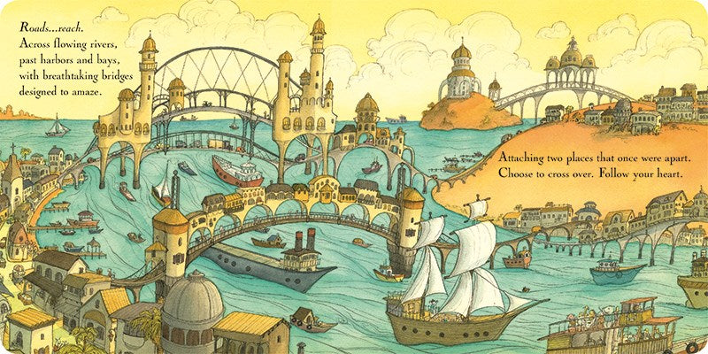 An inspiring celebration of life and new experiences--perfect for graduations and fans of Oh, the Places You'll Go!Roads give you chances to seek and explore. Want an adventure? Just open your door.Join an adventurous rabbit and his animal friends as they journey over steep mountain peaks, through bustling cityscapes, and down long, winding roads to discover the magical worlds that await them just outside their doors.Award-winning author Pat Zietlow Miller's lilting rhyme and bestselling illustrator Eliza Wheeler's enchanting, lush landscapes celebrate the possibilities that lie beyond the next bend in the road--the same road that will always lead you home again.