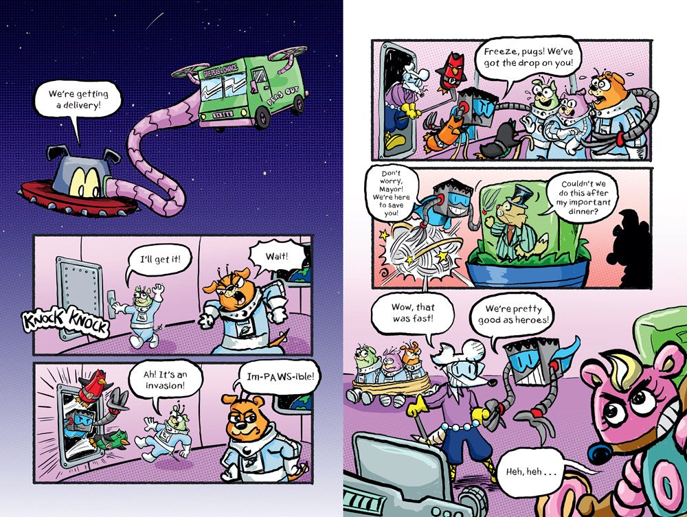 Max Meow is BACK and up against PUGS from OUTER SPACE in this hilarious graphic novel series with CAT-ITUDE! PURR-fect for fans of Dog Man, Bad Guys, Hilo, and anyone who loves to LAUGH!