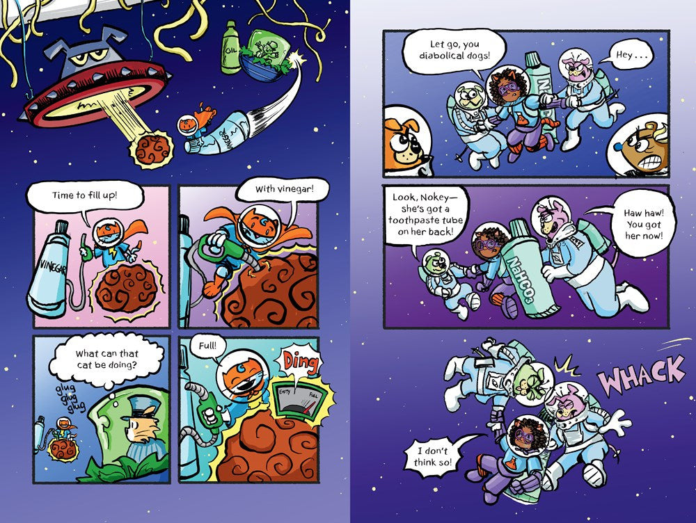 Sometimes being a HERO means knowing when to ask for help, and it will take a whole universe of good guys to stop these space dogs! Luckily Max and Mindy have backup. Meet Rex Rocket, Intergalactic Space Guard, and get ready for Kittyopolis's Bad Guys to become Good (at least temporarily!) to join the adventure! Packed with twists and turns, puns and fun, put your paws together for the latest action packed adventure in the laugh out loud series kids (and cats!) love! Bonus: Includes how to draw Rex Rocket!