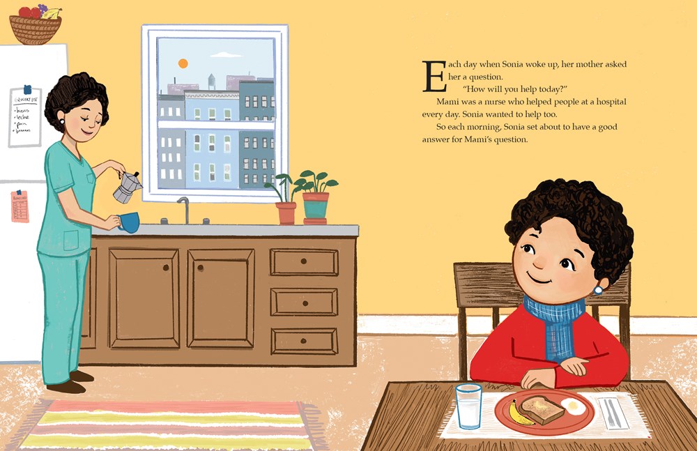 Every night when Sonia goes to bed, Mami asks her the same question: How did you help today? And since Sonia wants to help her community, just like her Mami does, she always makes sure she has a good answer to Mami's question.