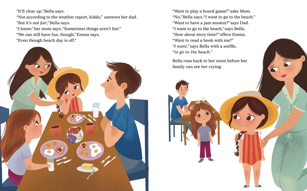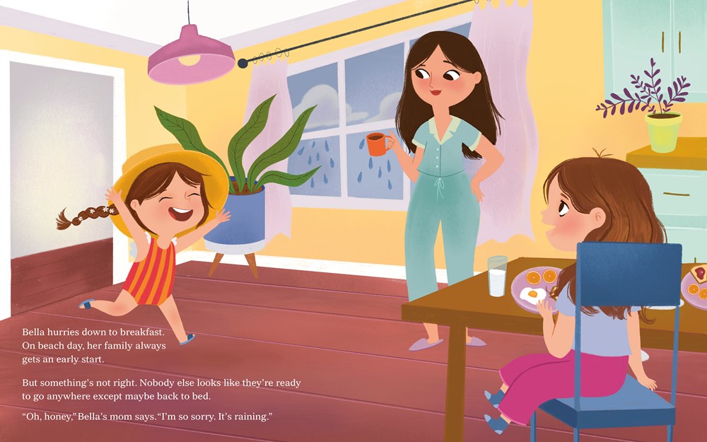 But a rainstorm hits and Bella’s perfect family beach day is ruined.