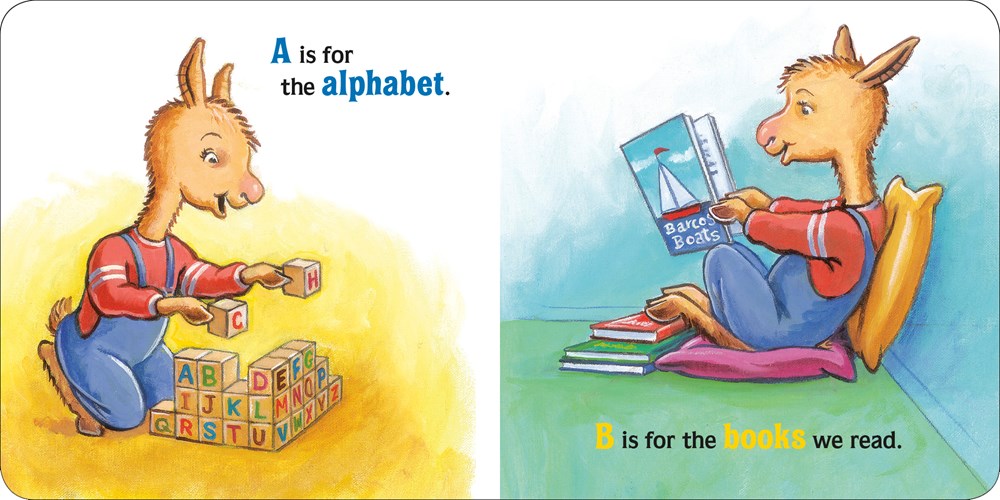 A is for alphabet B is for books we read Join Llama Llama as he makes his way from A to Z in this colorful ABC board book illustrated in the classic Anna Dewdney style. From crayons to ice cream to kisses, Llama Llama introduces you to all of his favorite things!