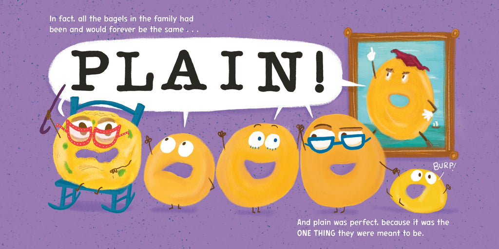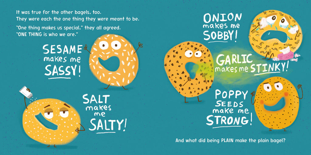 Hey. I’m a bagel who is just one thing: PLAIN. The other bagels? They’re all just one thing, too. Garlic. Salt. Onion—you get the idea.