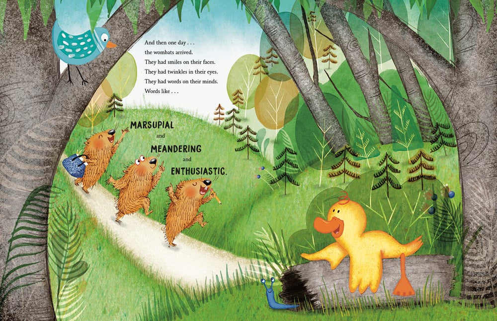 They use words like enthusiastic and splendiferous, ready to turn ordinary into EXTRAordinary! With twinkles in their eyes and words on their minds, the word wombats come to transform Evergreen Forest.