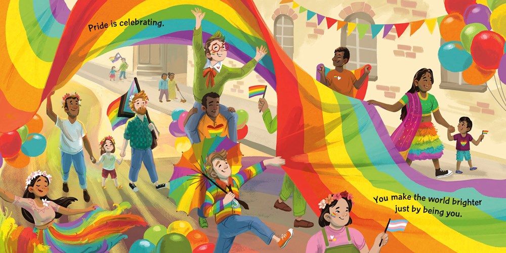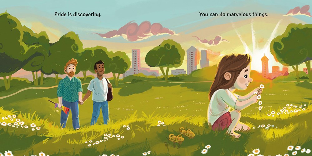A little girl and her two dads discover the true meaning of Pride as they prepare their colorful flower crowns for their local Pride parade. When her preparations don’t go according to plan, the dads remind their daughter that it’s okay to make mistakes. They show her kindness and love, and that being happy with who you are is the most important part of Pride