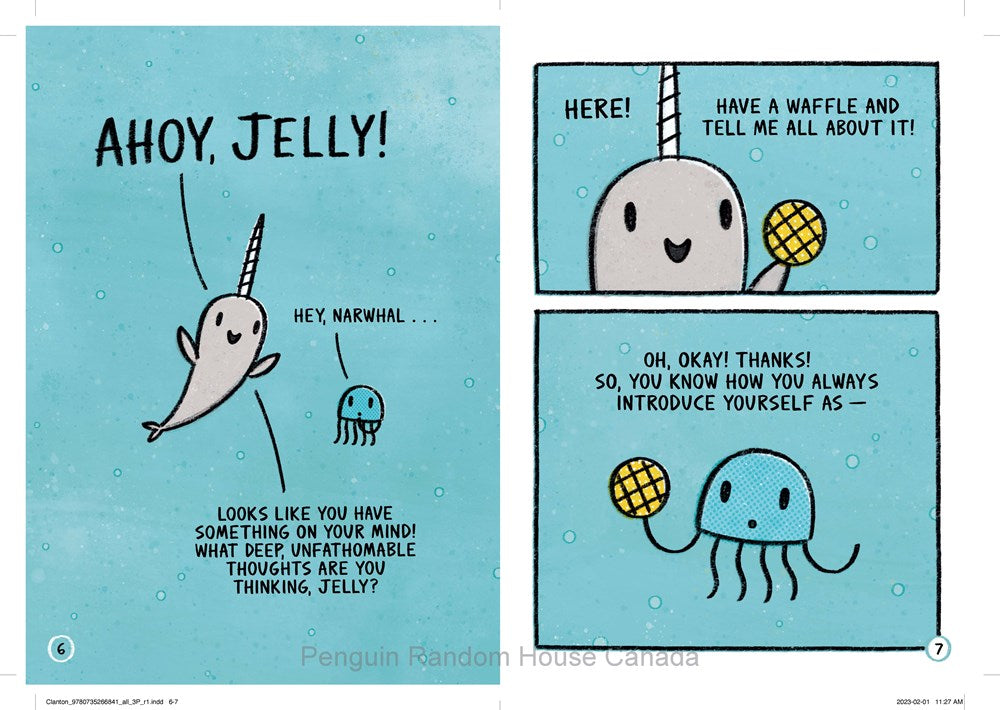 is a unicorn! But Jelly's out-of-this-world adventure makes him feel out of his comfort zone, and he wishes he were at home . . . can Narwhal cheer Jelly up and also party down with their new unicorn pals?
