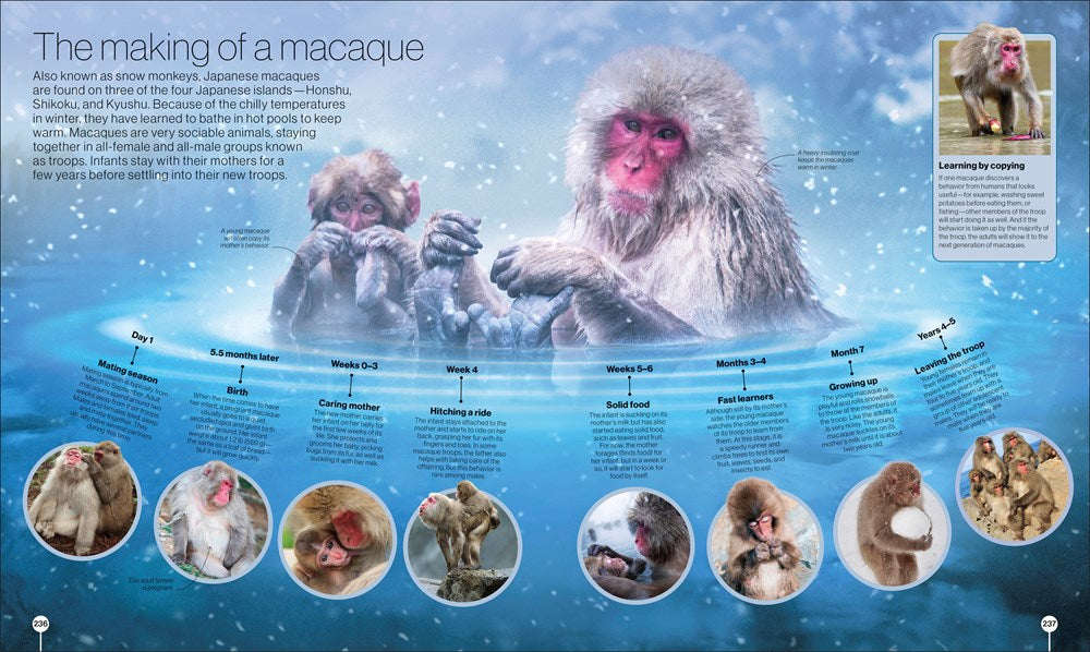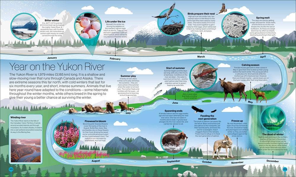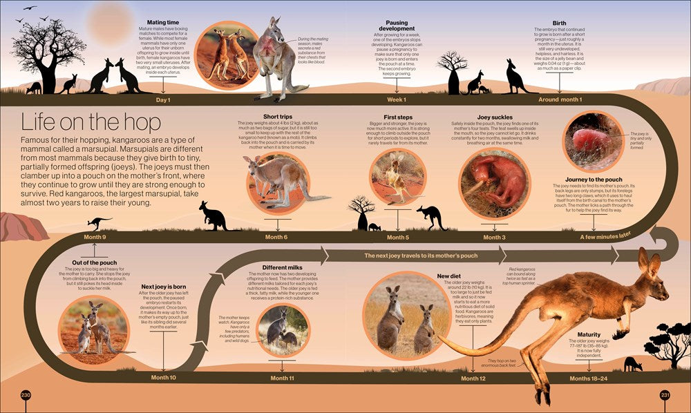 First, the book looks back to the start of our world’s existence. Learn how many years it took the moon to form and witness Earth’s continents collide. Discover the history of Earth’s most spectacular features—from the Grand Canyon to the Sahara Desert. See how life evolved, from the first single-celled organisms to the extraordinary variety of creatures living today.