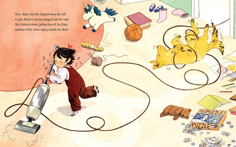 But Marcy's Mama has had enough! Waipo and Waigong are visiting today, and Marcy's room is a disgrace. What will her grandparents think? Not to worry—Marcy knows just what to do! From doing the laundry to getting herself dressed, little Marcy Su will certainly go above and beyond than what Mama asked.