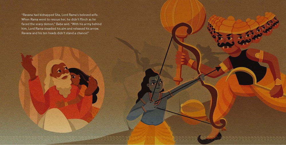 Raaga has always dreamed of singing at the annual Diwali mela at the Royal Place. Ever since she was a little girl, her grandfather would tell her the story of how Lord Rama and his army slew the ten-headed demon Ravana (the story for which Diwali is celebrated today). While young Raaga has always suffered from stage fright, the more Raaga practices with her grandfather, the larger her audience grows, like her own little army.