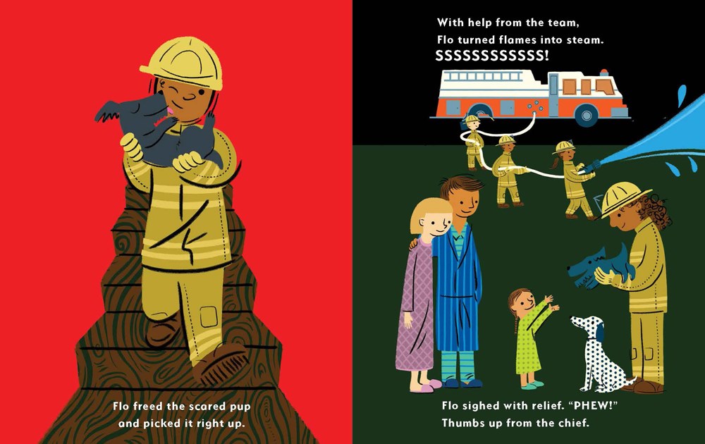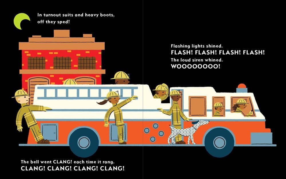 Ring! Clang! Firefighter Flo and her team race to stop a fire in this picture book filled with bold art and fun onomatopoeia.Last night at the Fire Station…With a jingly-jang, the telephone rang.RING-RING! RING-RING!Firefighter Flo jumps out of bed! There’s a fire and only a pro like Flo and her team can help. Read along as the firefighters put on their fireproof suits, rush off in their truck, douse the fire with the big hose, and rescue the family pet. The CLANG of the siren and WHOOSH of the fire will have parents and kids reading aloud together.The Big Jobs, Bold Women series introduces even the youngest readers to women as leaders in unusual jobs with teams relying on them. The first in the series, Fire Flo makes this empowering message accessible with a showstopping art and story about a job every kid loves. With dynamic artwork from Dan Yaccarino, Nickelodeon character designer for The Backyardians, and energetic verse from Andrea Zimmerman, best-selling author of Trashy Town, Firefighter Flo is the perfect read for kids who love to watch the big red fire trucks rush by.