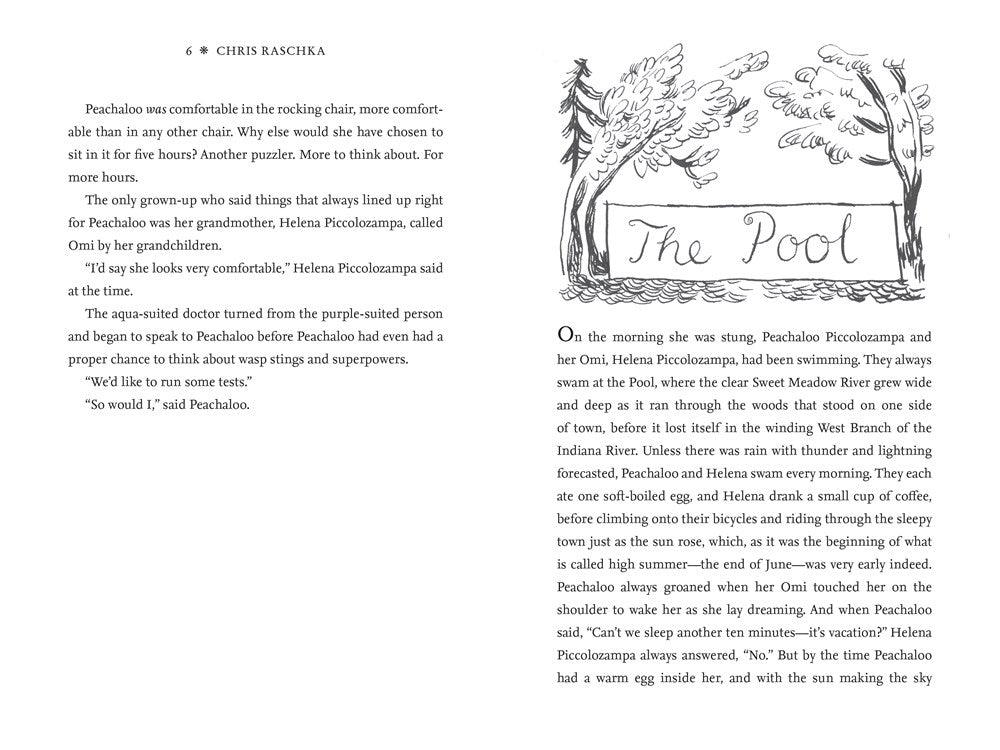 Waiting for Guffman meets Parks and Recreation for middle grade readers, in this one-of-a-kind illustrated novel from Caldecott Medalist Chris Raschka, where a wasp sting grants Peachaloo a useful new superpower.