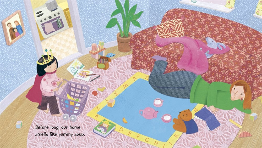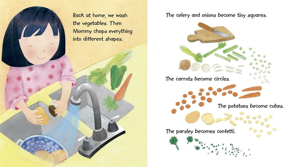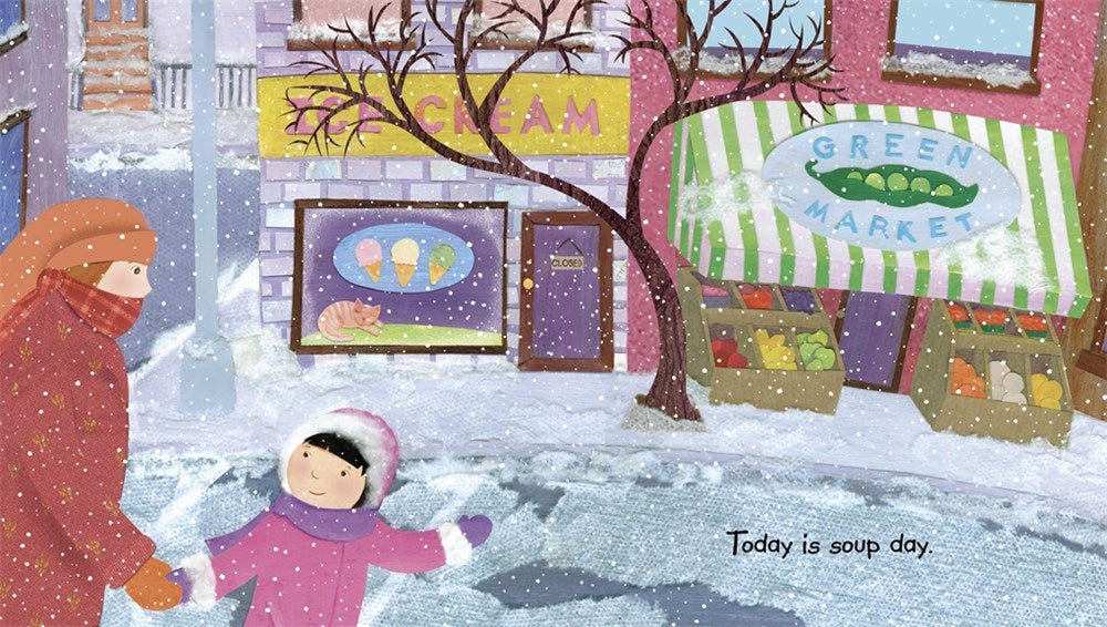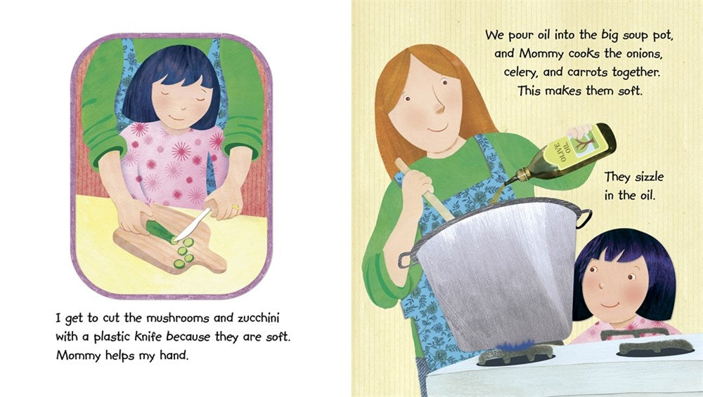On a cold, snowy day, a young girl and her mother shop to buy ingredients for vegetable soup. At home, they work together-step by step-to prepare the meal. While the soup is cooking, they spend the time playing games and reading. Before long, Daddy's home and the family sits down to enjoy a home made dinner. This book celebrates the importance of making a nutritious meal and sharing in the process.