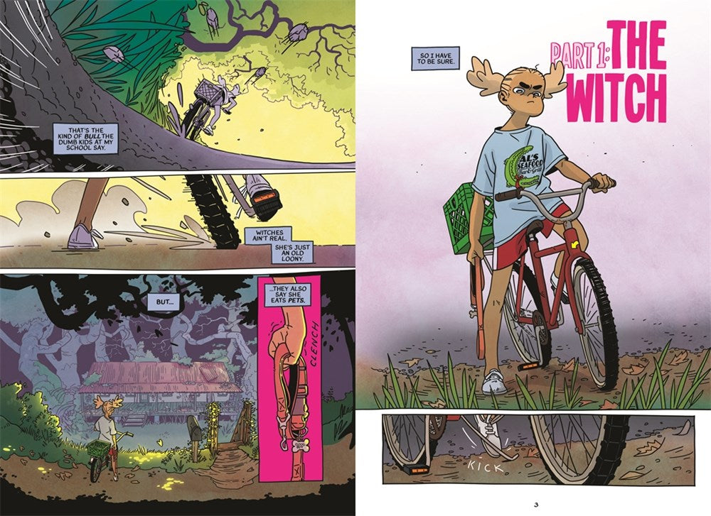 And when Snap’s dog goes missing, the first place she looks is the witch’s house. She finds her dog there, recovering from being hit by a car, in the care of a woman named Jacks. She is a crocks-wearing, internet-savvy older woman whos collects roadkill, put their spirits to rest, and cleans and sells their articulated skeletons online.
