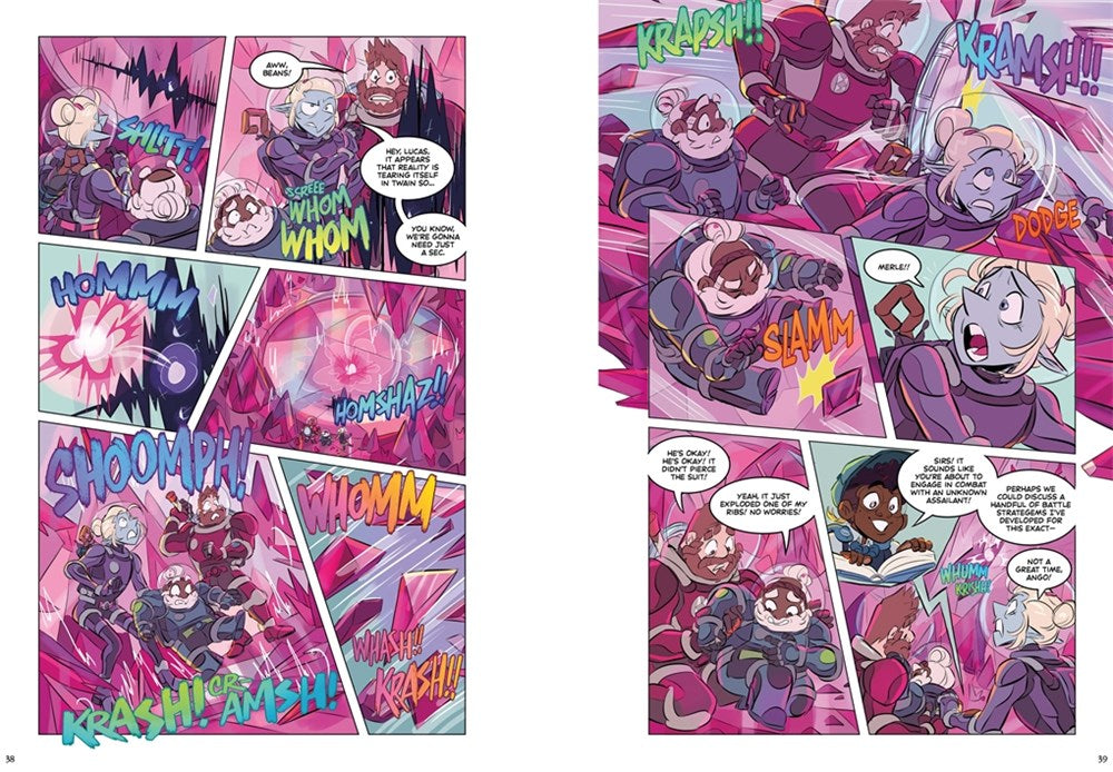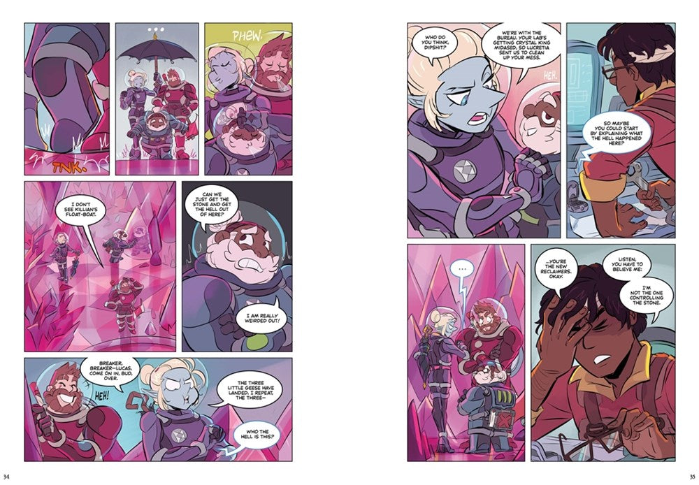 It’s only a matter of time before this sparkling disaster crash-lands, but in order to find the stone and save the whole planet from being King Midased, our heroes will have to fight their way through a gauntlet of rowdy robots and crystal golems, decide whether they can trust the evasive Lucas Miller, and solve the mystery of what—or who—has put them all in peril, before there’s no world left to save.