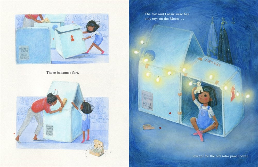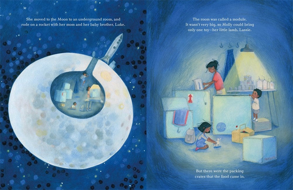When Molly and her family move to the moon, they can only pack the essentials—just one toy each for Molly and her baby brother, Luke.