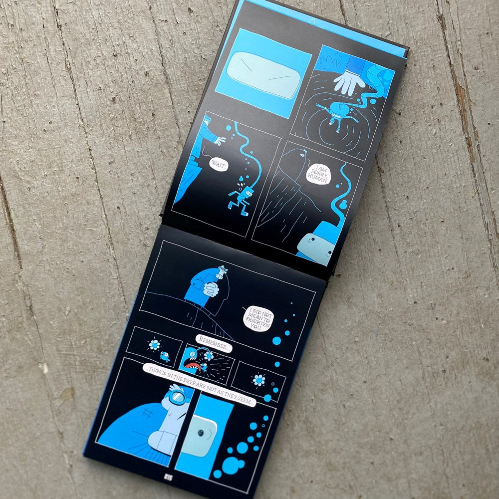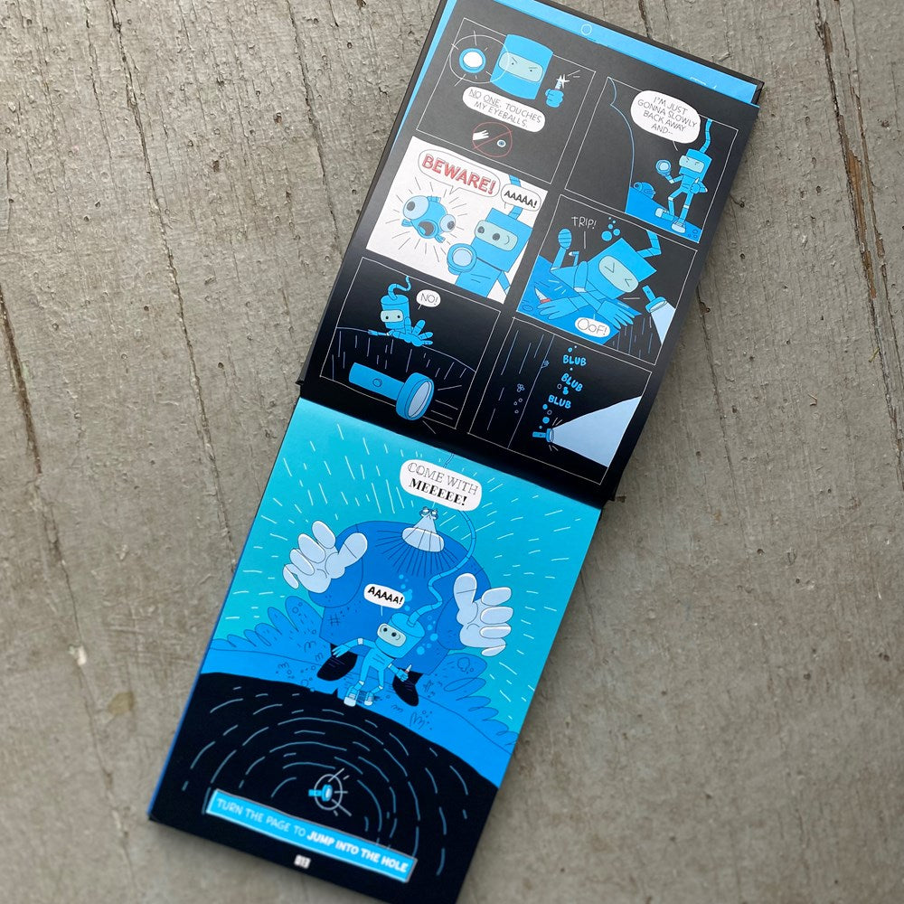 Immerse yourself in this unique reading experience, where you flip the pages up and read downward as you descend into the ocean's depths!