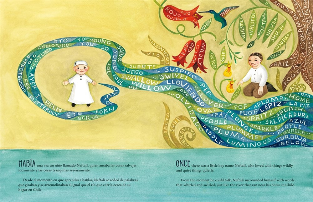 Once there was a little boy named Neftalí who loved wild things wildly and quiet things quietly. From the moment he could talk, he surrounded himself with words, seeking comfort and inspiration from the magic he discovered between the pages of books.