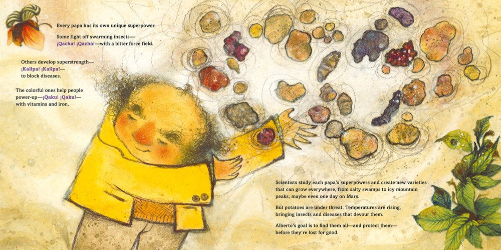 What can a potato do? To Peruvian scientist Alberto Salas, they have the power to change the world. Go on the hunt with Alberto for for wild potatoes before they go extinct in this playful picture book biography, gorgeously illustrated by Caldecott-honoree Juana Martinez-Neal.