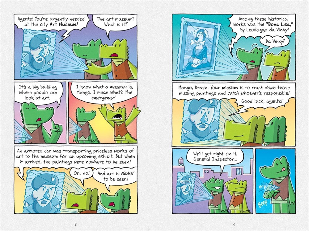 New York Times bestsellers and sewer surfing super-sleuths Mango & Brash are back in the sixth volume of the smash hit InvestiGators series! When rare paintings go missing, the Investigators are called to the scene… the art scene! Mango and Brash go undercover and under canvas as internationally renowned painters to expose a crook who has truly mastered the art of crime! Can they recover the missing masterpieces and save the city art museum’s fundraising gala before it's too late... and (even worse!) they run out of appetizers? Your young sleuths will love following the clues in this latest pièce de résistance of actionpacked illustrated fun!