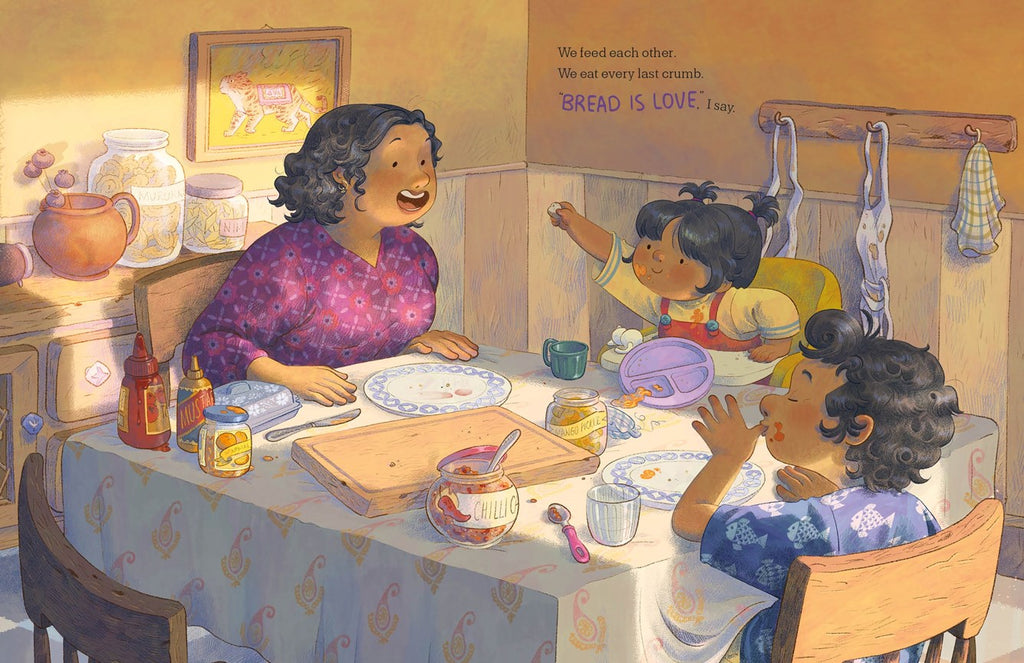 Join a mother and her adorable children for their weekly baking ritual in Pooja Makhijani’s touching story, with warm, tender art by Lavanya Naidu. Bread Is Love celebrates the act of baking and eating bread, and sharing it with family.