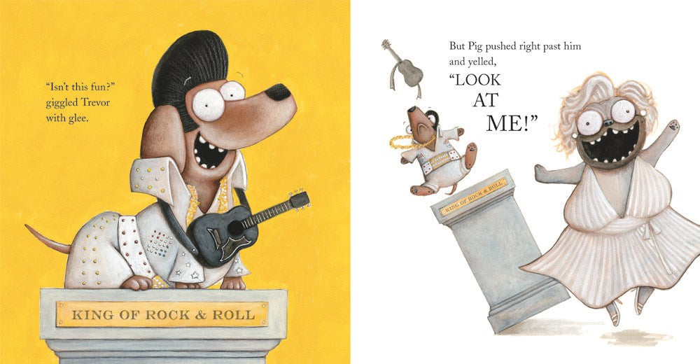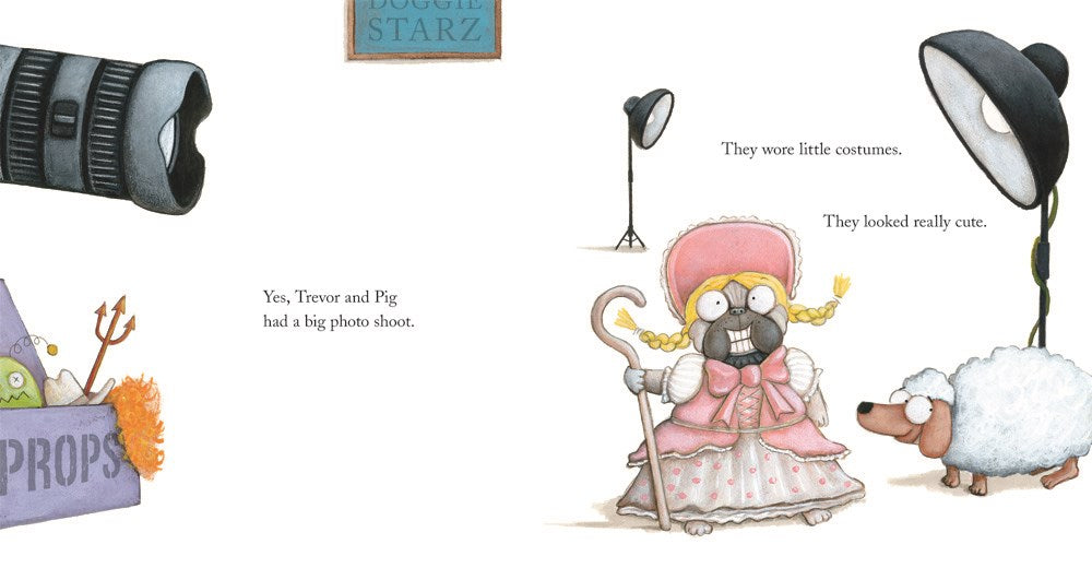 The world's most self-centered pug wants to be the star of a fun photo shoot. He pushes his good friend, Trevor, out of the way and hogs all of the costumes. He is going to be the star! But when the photographer starts to favor Trevor, Pig must try everything to steal back the show!