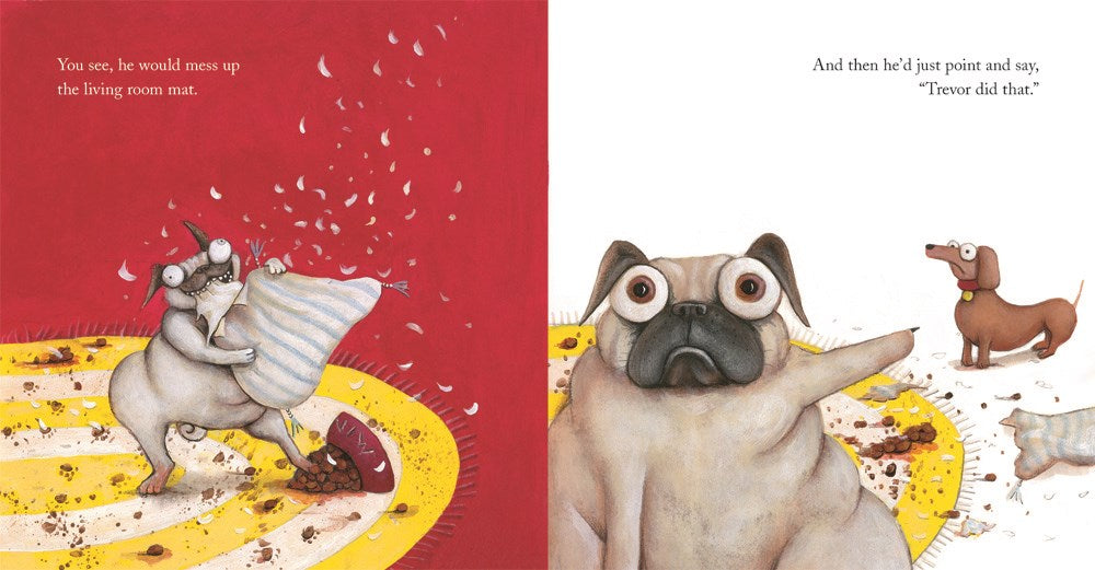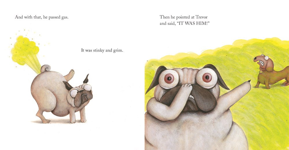 Pig the Pug tells lies to get what he wants and get Trevor the sausage dog in trouble. When Pig hatches a plan to get at the hidden treats in the back of the closet, his lies get Trevor thrown out of the house. Finally he's all alone with those treats. What he didn't expect was the bowling ball. Maybe this time Pig the Pug will learn his lesson!