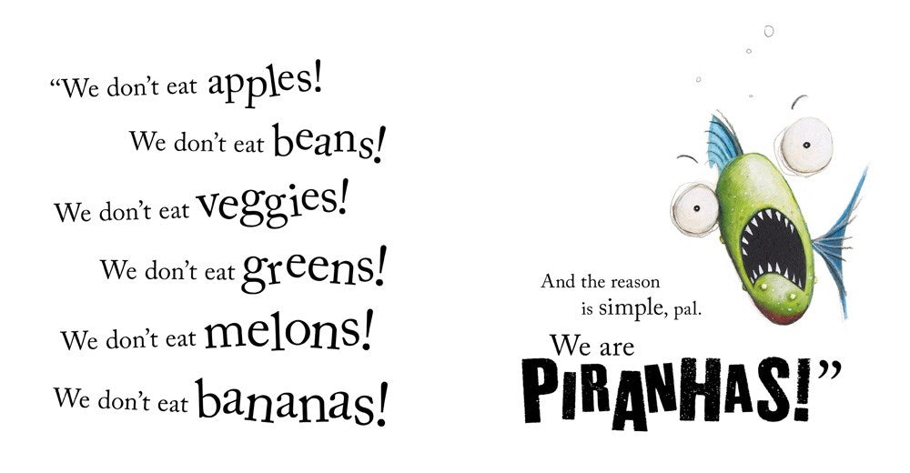 Rich with author-illustrator Aaron Blabey's hysterical text and unforgettably wacky illustrations, Piranhas Don't Eat Bananas is a hilarious story about trying new things -- no matter how strange they seem!