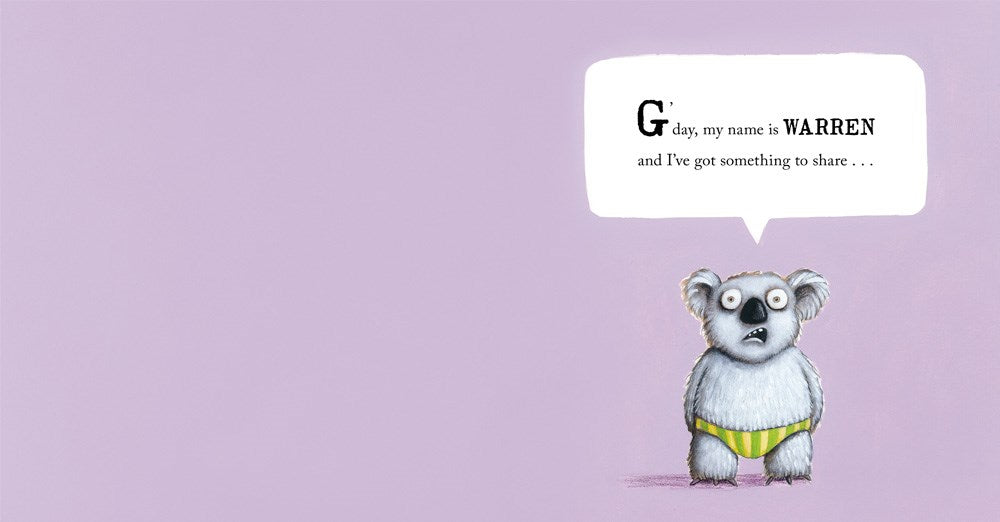 "G'day, my name is Warren and I've got something to share... Just because I'm furry DOESN'T MEAN THAT I'M A BEAR."
