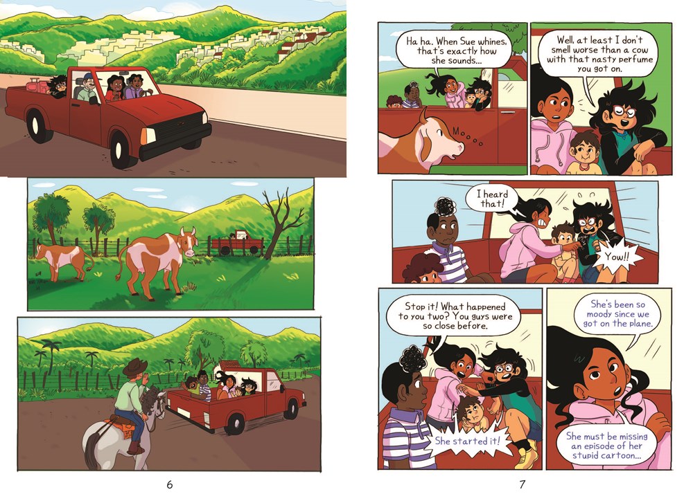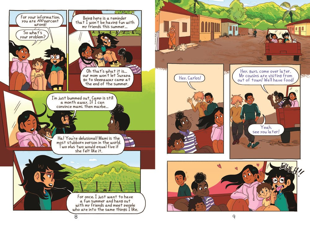 Sue just wants to spend the summer reading and making comics at sleepaway camp with her friends, but instead she gets stuck going to Honduras to visit relatives with her parents and two sisters. They live way out in the country, which means no texting, no cable, and no Internet! The trip takes a turn for the worse when Sue's mother announces that they'll be having a surprise quinceañera for Sue, which is the last thing she wants. She can't imagine wearing a big, floofy, colorful dress! What is Sue going to do? And how will she survive all this "quality" time with her rambunctious family?
