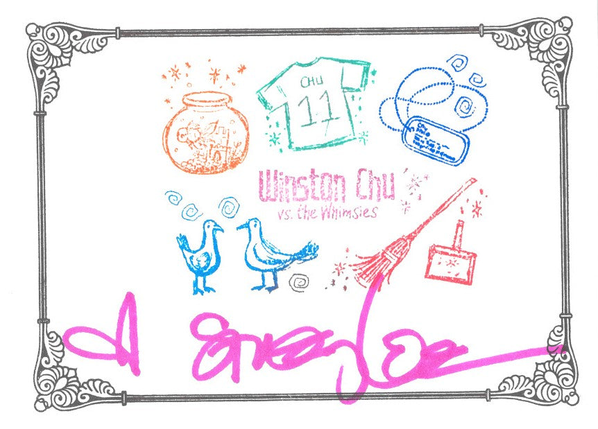 While skateboarding home with a pie in hand, Winston inadvertently stops a robbery at Mr. Pang’s Whimsies, an oddities shop in Chinatown. As a reward, Mr. Pang invites Winston to choose any item in the store. But the strange old man warns Winston to browse carefully, for the first thing Winston touches will be the thing he gets. Before Winston can decide, a magpie flies under a shelf, and he impulsively grabs an old broom to sweep it out.