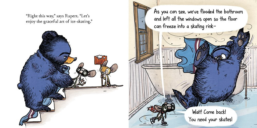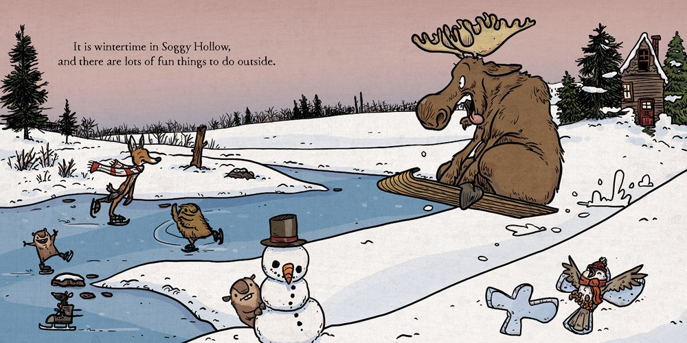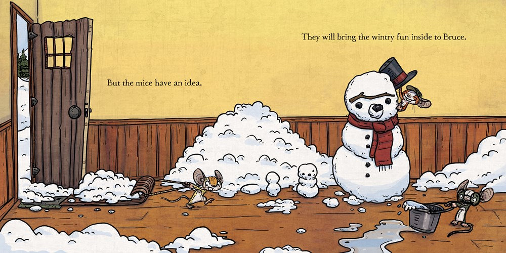 It’s wintertime in Soggy Hollow and the mice are doing all their favorite outdoor things, like ski jumping, building a snow family, and ice skating. But not Bruce. He’s inside with a cold. So the mice decide to bring the winter fun indoors! Lucky Bruce!
