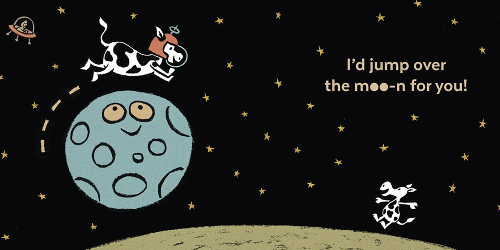 The New York Times bestselling pair Tom Lichtenheld and Amy Krouse Rosenthal present udderly perfect expressions of affection to share between any cow and calf: I love you no matter your moo-d. I love giving you a big s-moo-ch. My love for you is as big as . . . a MOO-SE! With a universal message and warm, funny text that families will read and reread together, this exuberant book from two children’s book superstars at their best is a moo-velous choice for gifts year-round, especially for fans of I Love You to the Moon and Back and Guess How Much I Love You.
