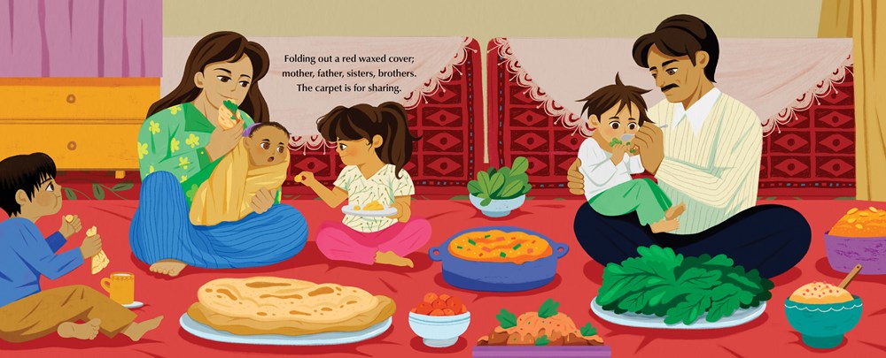 follows a day in the life of an Afghan refugee child, where every moment revolves around love, family, and the carpet that connects them to home. The carpet is the centerpiece of family life, where meals, stories, laughs, and memories are shared. This moving story, inspired by the author’s life, celebrates what makes a home—no matter where you are.
