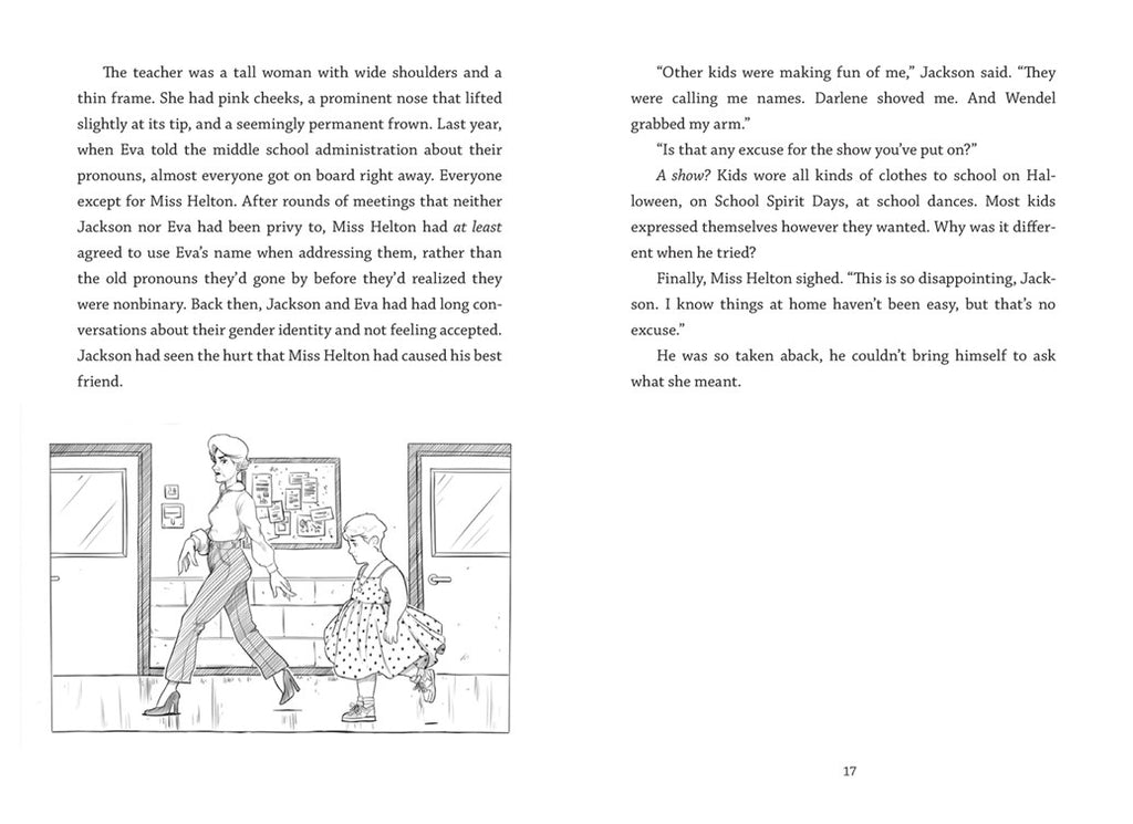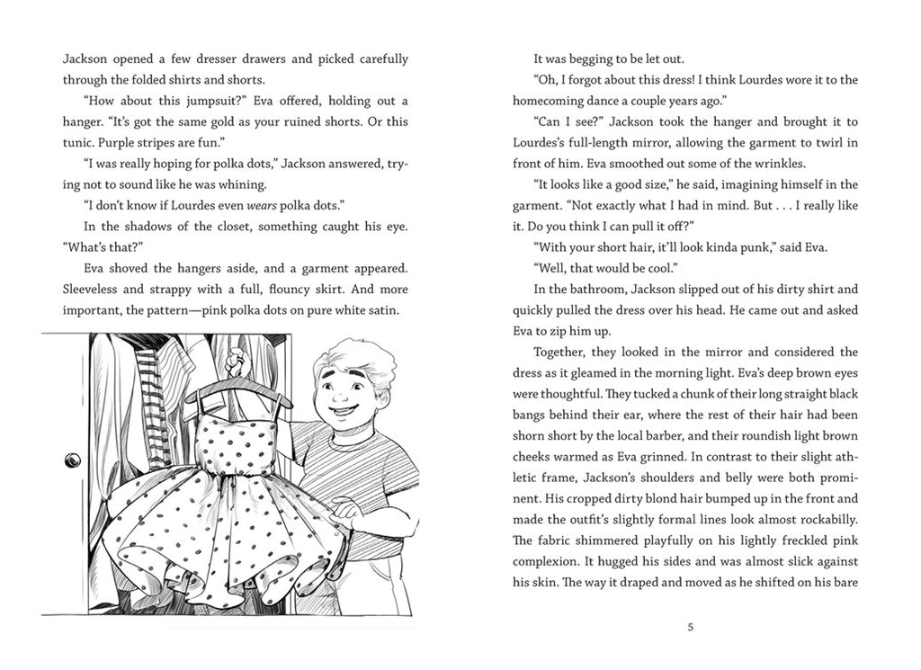 Jackson doesn’t know why people are saying that he needs to “dress like a boy.” And with all the discussions of “dressing like a boy” and “dressing like a girl,” he wonders where people like his best friend Eva, who’s nonbinary, fit into all of this. Or why he felt so confident and happy while wearing that dress.