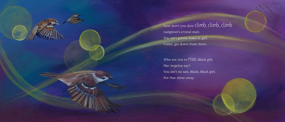 With poignant, poetic prose and striking, color-drenched illustrations, this empowering picture book centers the inherent worthiness and radiance of Black girls that is still far too often denied. A love letter to and for Black girls everywhere, Black Girl Rising alchemizes the sorrow and strength of the past into the brilliant gold of the future, sweeping young readers of all backgrounds into a lyrical exploration of what it means to be Black, female, and glorious.