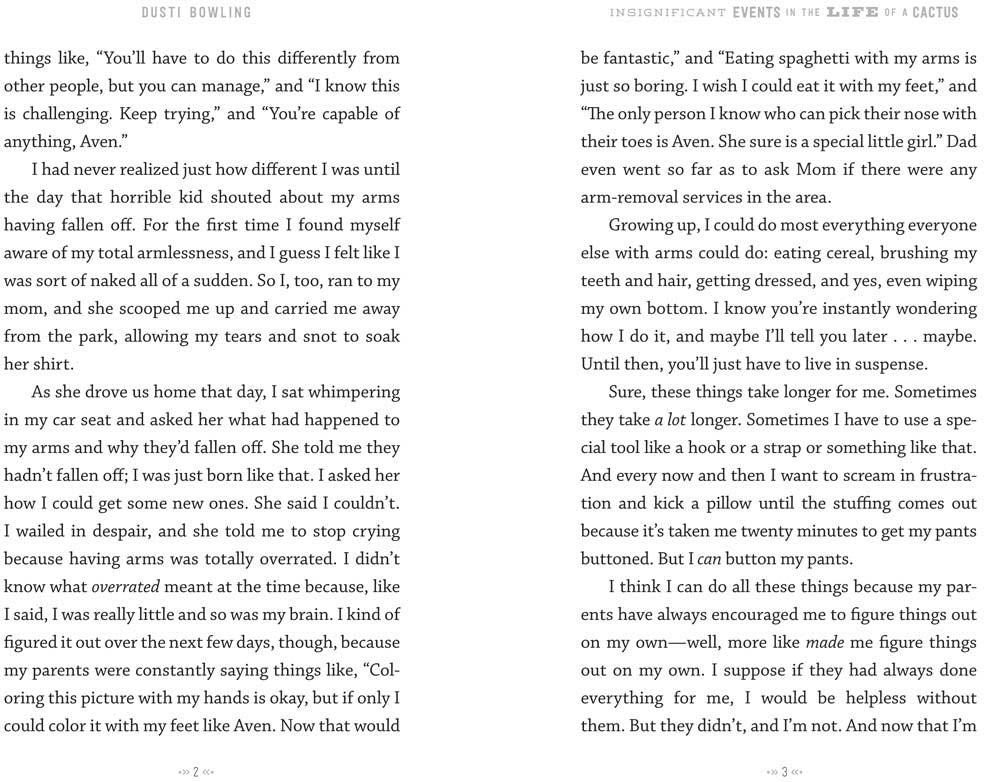 Aven Green loves to tell people that she lost her arms in an alligator wrestling match, or a wildfire in Tanzania, but the truth is she was born without them. And when her parents take a job running Stagecoach Pass, a rundown western theme park in Arizona, Aven moves with them across the country knowing that she’ll have to answer the question over and over again.