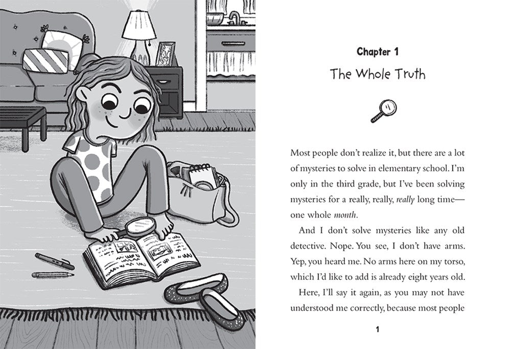 Third-grader Aven Green has been solving mysteries for a whole month—cracking such cases as The Mystery of the Cranky Mom. But can this perceptive detective solve two cases at the same time? First her teacher’s lunch bag disappears. Then Aven’s great-grandma’s dog goes missing. Fortunately, since Aven was born without arms, all the “arm” cells went to her super-powered brain instead. (That’s her theory, anyway.) This hilarious chapter book showcases a new side to Dusti Bowling’s unforgettable protagonist.