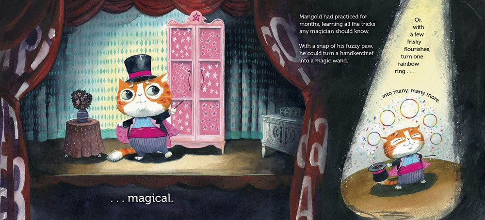 In his second starring role, Marigold, the fussy cat with a comically short fuse, sees his birthday party upended by a group of party-crashing birds, with hilarious results -- and a lesson in "please" and "thank you."Marigold is throwing himself the most amazing birthday party ever! He's baked himself an enormous birthday cake and planned everything well in advance. Everyone is ready for something extraordinary. Something...magical!But when Marigold tries to make a bouquet of flowers disappear, a pesky finch appears in its place. That's not right at all!At every turn, Marigold's magic trick gets derailed until the distractions are too much to bear, and Marigold launches into a full-on feline frenzy, making everything--and everyone--disappear. What magic words can save the day?
