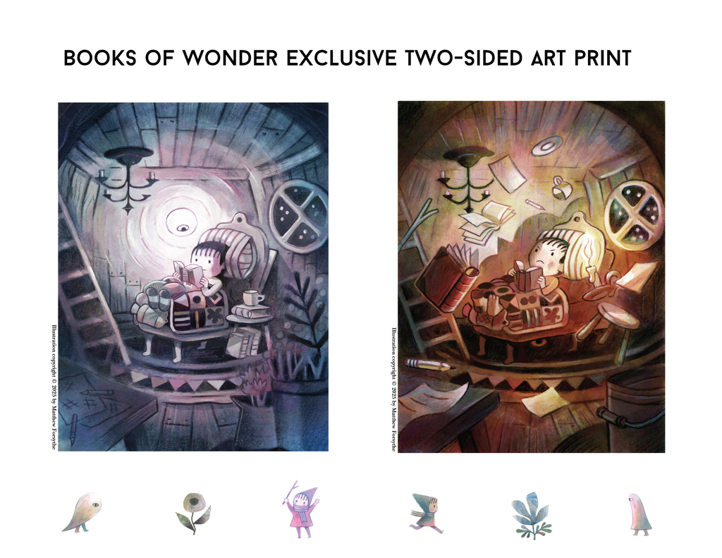 Includes a Books of Wonder exclusive double sided art print, cover print, and sticker sheet, all while supplies last!