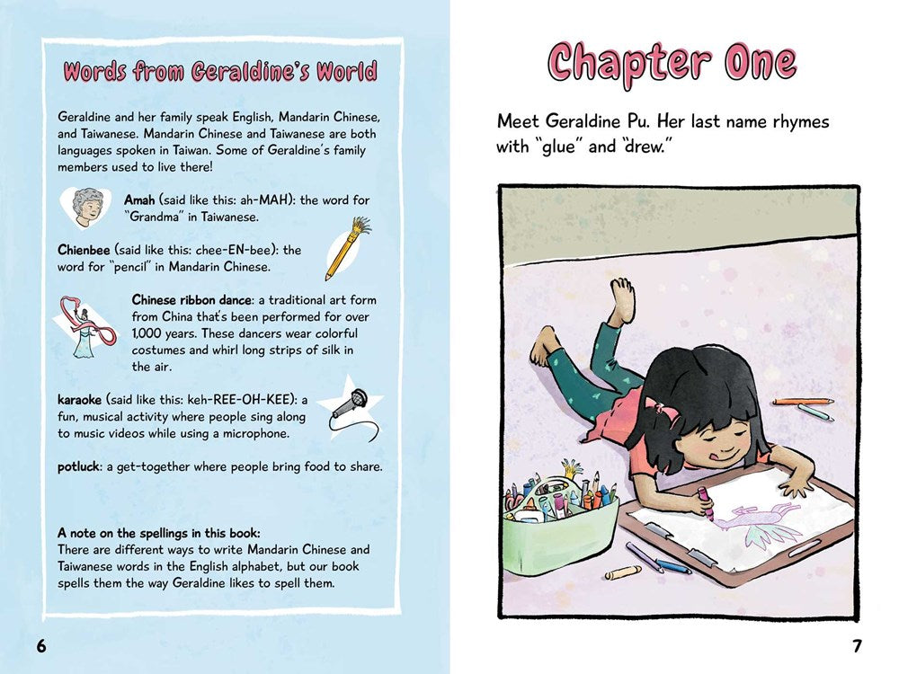 Spunky, funny, and friendly Geraldine Pu writes a story for class in this third book in this Level 3 Ready-to-Read Graphics series!