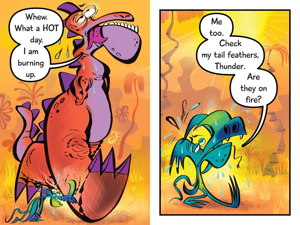 Two unlikely dinosaur friends brave the way in the second book in the Thunder and Cluck Level 1 Ready-to-Read Graphics series!It is a hot day. Thunder and Cluck find a dark, cool cave. But which friend is brave enough to lead the way in?Ready-to-Read Graphics books give readers the perfect introduction to the graphic novel format with easy-to-follow panels, speech bubbles with accessible vocabulary, and sequential storytelling that is spot-on for beginning readers. There’s even a how-to guide for reading graphic novels at the beginning of each book.