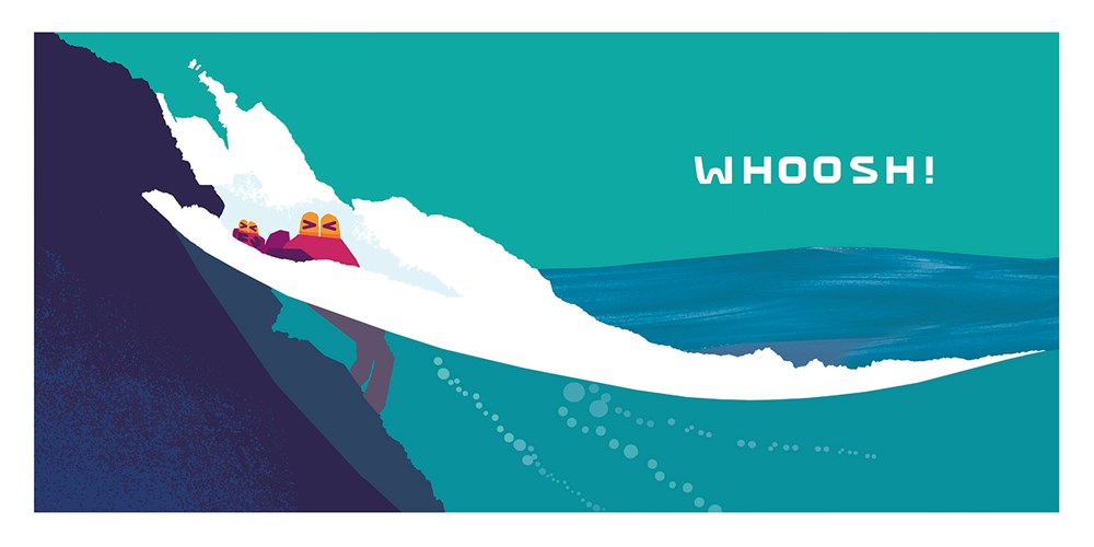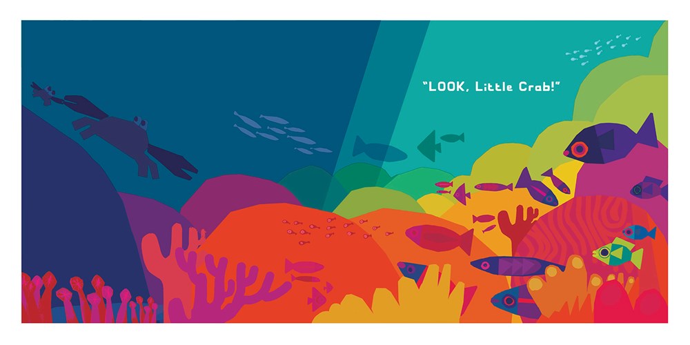 From the award-winning creator of Shh! We Have a Plan comes a vibrantly colorful story about mustering the courage to try something new.Little Crab and Very Big Crab live in a tiny rock pool near the sea. Today they’re going for a dip in the big ocean. “This is going to be so great,” says Little Crab, splish-splashing and squelch-squelching along, all the way to the very edge. Then comes a first glance down at the waves. WHOOSH! Maybe it’s better if they don’t go in? With vivid colors, bold shapes, and his trademark visual humor, Chris Haughton shows that sometimes a gentle “don’t worry, I’m here” can keep tentative little crabs sidestepping ahead — and help them discover the brilliant worlds that await when they take the plunge.