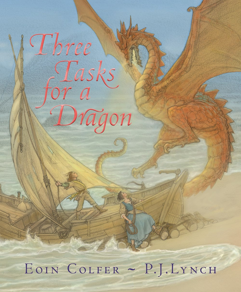 Studious Prince Lir is next in line to become the Wolfhound King, but he can’t ride a horse, lift a sword, or summon the fabled wolfhounds. So his stepmother decrees that her own son will inherit the crown instead, sending Lir away on a seemingly impossible—and assuredly fatal—quest: to rescue the maiden Cethlenn from the once-fearsome dragon Lasvarg. Rather than wage battle, Lir insists that Lasvarg, now decidedly past his prime, honor tradition by setting him three tasks to perform—starting with tackling the mold encrusting the dragon’s cave (and his feet!). As Lir improves Lasvarg’s life, he also grows closer to Cethlenn . . . as well as the wolfhound puppy strangely devoted to her. In time, they learn more of the dark magic that may be making pawns of them all—and how Cethlenn herself could be the key to breaking a spell that clouds the entire kingdom. With transporting language and a magnificent dragon masterfully rendered with a range of emotions, Eoin Colfer and P.J. Lynch make their own magic in this classic fantasy with a light feminist twist.