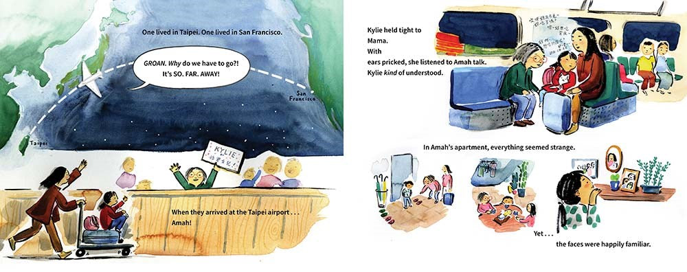 When she and Mama finally go to Taipei, Kylie is shy with Amah. Even though they have spent time together in video chats, those aren’t the same as real life. And in Taiwan, Kylie is at first uncomfortable with the less-familiar language, customs, culture, and food.