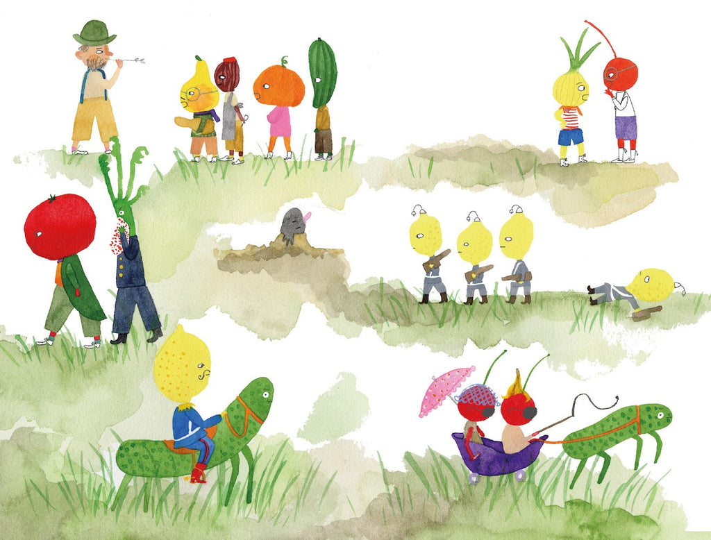 Cipollino is young, brave, clever, and determined—exactly the kind of valiant hero that’s bound to triumph in fairy tales. In this colorful, episodic adventure story, in which nearly everyone is animal, vegetable, or fruit, Cipollino leaves home and sets off into the world to free his wrongfully imprisoned father. In the process, he faces off against scoundrels of all kinds with wit and humor, while winning both allies and friends. What hangs in the balance is the freedom of an entire kingdom from the ridiculous rules of the all-powerful Prince Lemon and the dignity of each blueberry, string bean, and spider! This is a charming, comic, highly-readable work of fiction for readers 9 and up, which also has the distinction of being one of Hayao Miyazaki’s