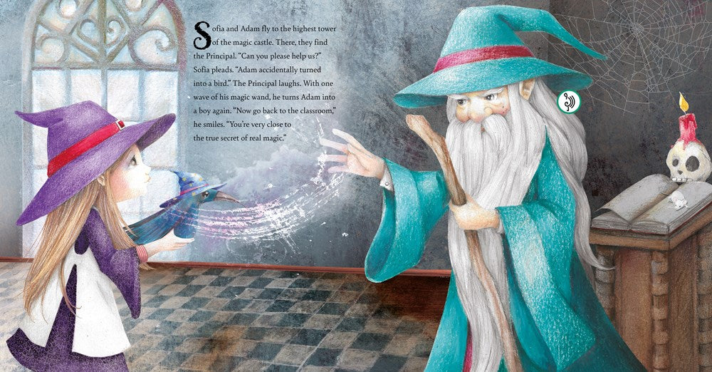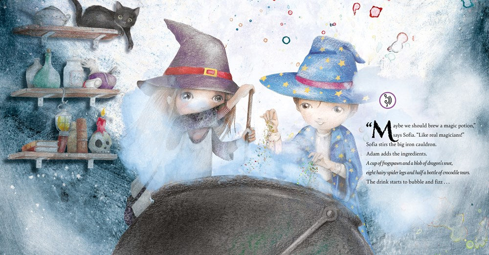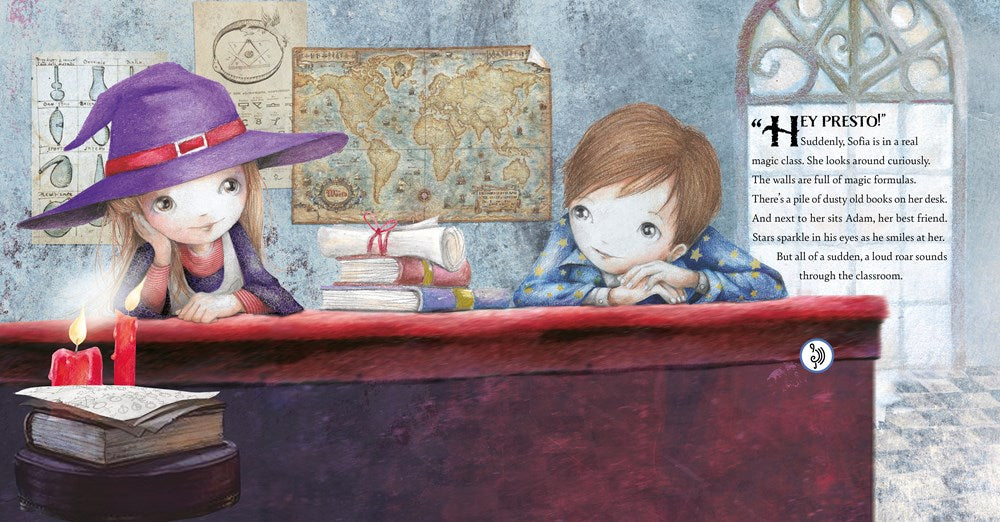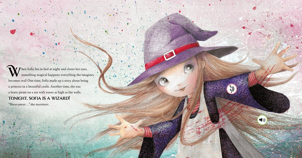 Sometimes, when Sofia lies in bed at night and closes her eyes, something magical happens: everything she imagines becomes real! Tonight, her room changes into a castle full of magic wands, cauldrons, and flying brooms. Tonight, Sofia is a wizard!