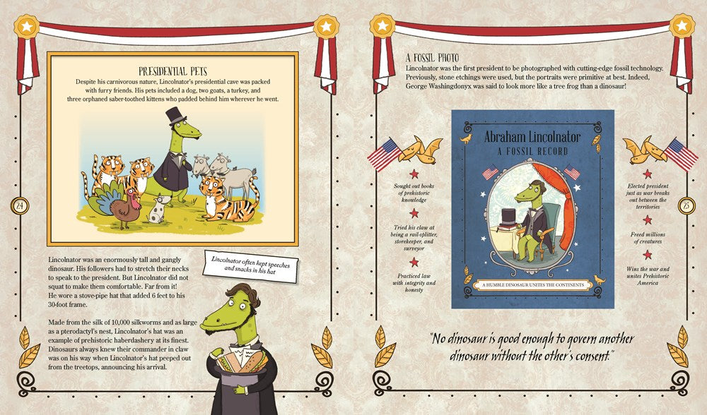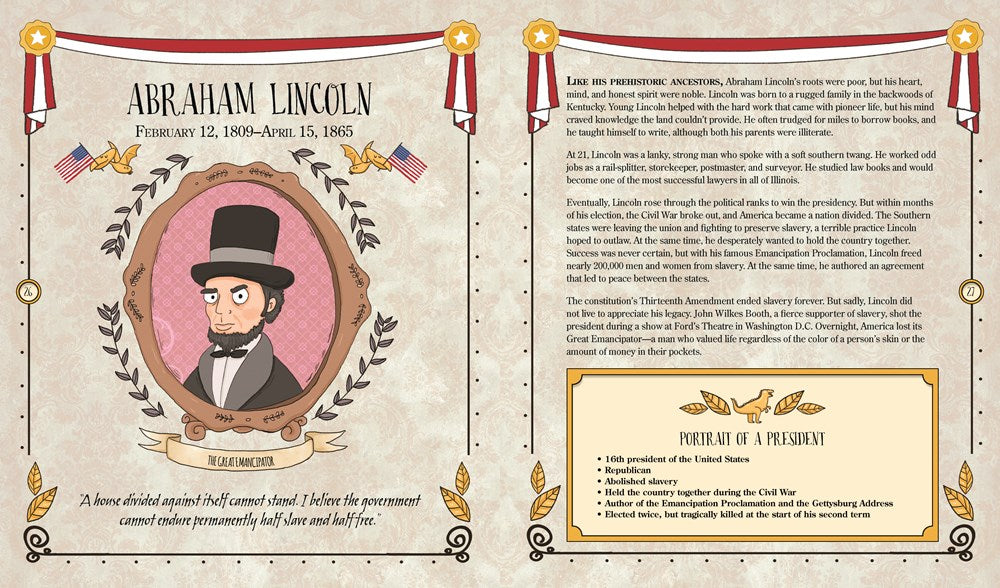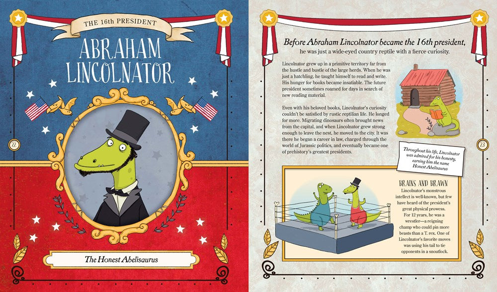 Introduce children to American history with hilarious dinosaur mashups of historical figures, including Thomas Jeffersaurus and Theodore Rexevelt.