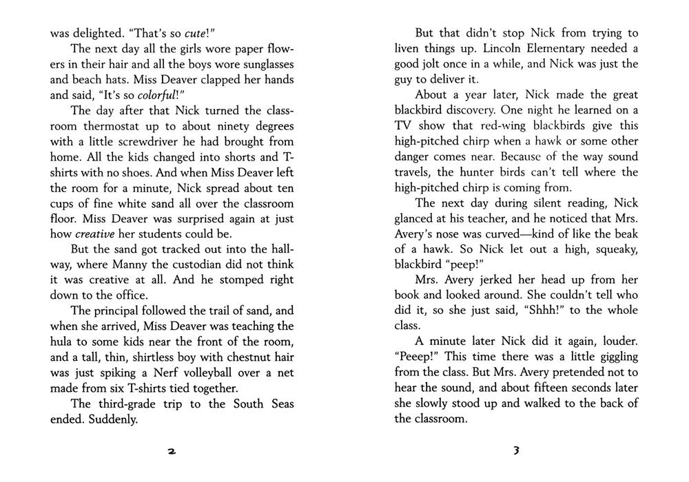 Things begin innocently enough as Nick gets his friends to use the new word. Then other people in town start saying frindle. Soon the school is in an uproar, and Nick has become a local hero. His teacher wants Nick to put an end to all this nonsense, but the funny thing is frindle doesn’t belong to Nick anymore. The new word is spreading across the country, and there’s nothing Nick can do to stop it.