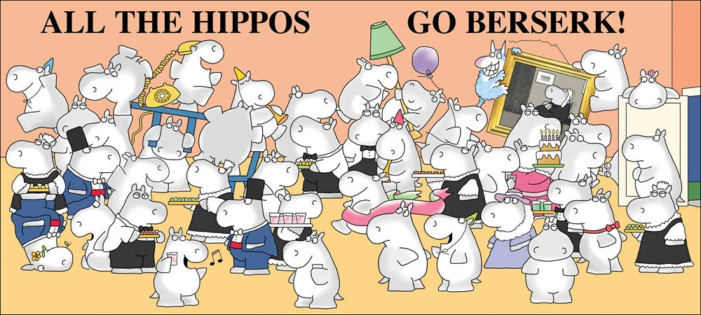 Exuberant hippopotamus guests show up in ever-increasing numbers, until an all-night party is inevitable. This snazzy new edition honors the enduring power of a deft and nuanced depiction of the Hippo Condition.